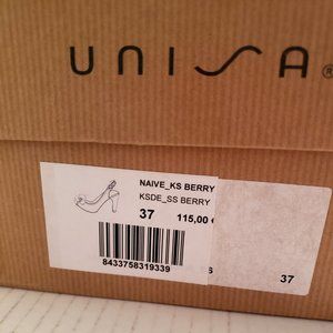 New in a box Slingback Peep Toe Shoes - Made in Spain, Size 37 (US size 6.5, 7). These Berry Hot Pink Soft Suede Leather Pumps with a chunky heel and a flower bow make for a very special classic shoe heels. These are a fab addition to any casual or dress up wardrobe.