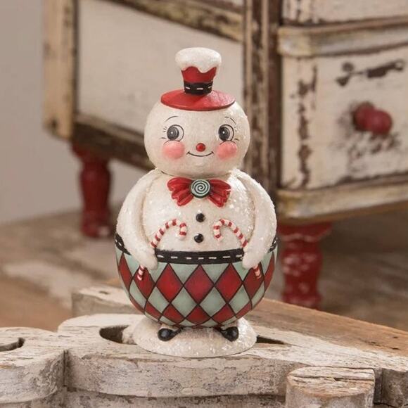 New Johanna Parker / Bethany Lowe Double Cane Conrad Jar. This adorable snowman jar by Johanna Parker is the perfect addition to your holiday decor and can be used for storing little treats.