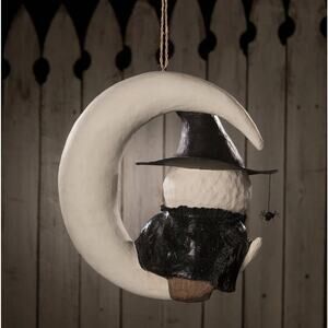New Bethany Lowe Witchy Owl On Moon Paper Mache