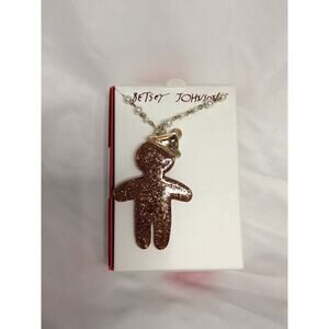 New Betsey Johnson Gingerbread Man Glitter Holiday Pendant Necklace.