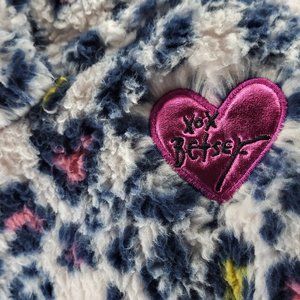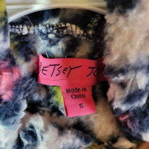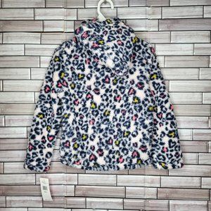New hoodie by Betsey Johnson. Girl’s size 5 long sleeve Sherpa faux fur popover top. This hoodie is very colorful with a close to leopard design, has blue spots with some colorful hearts. Pink XOXO Betsey heart on front. It has a single pocket across the bottom. This pullover is NEW WITH TAGS. Made of 100% polyester and machine washable. Great for the school or everyday use. Message with any questions.