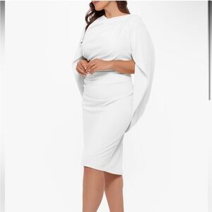 New Betsy & Adam Cape Sleeve Drape Back Cocktail Dress White Modest Wedding 14