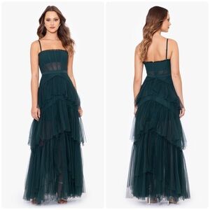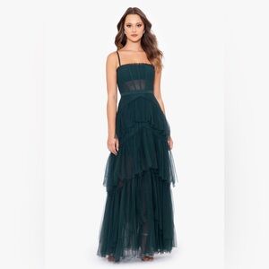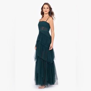 New! Betsy & Adam Jasmine Tiered Tulle Corset Gown Black🖤 size 2 NWT!