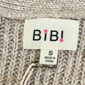 Brand New withTags Bibi Oatmeal V-Neck Button UP Cardigan Sweater Pointelle Sleeves MSRP: $48.50