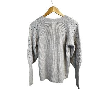 New Bibi Oatmeal V-Neck Button UP Cardigan Sweater Pointelle Sleeves Women's S