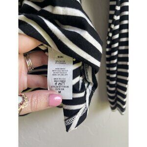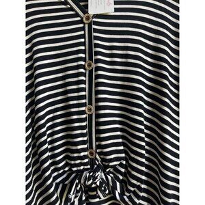 New! Bibi Size Medium Black White Striped V-Neck Top Tie Knot Waist