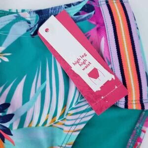 New Bikini Bottoms Floral High Leg, High Waist SMALL. So cute! These floral, jungle print bikini bottoms with leaves and flowers is so bright and fun. With a a flattering high leg design and high waist, you will be in style all summer long.