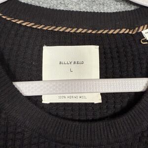 New Billy Reid Size Large Merino Wool Waffle Knit Sweater Black Crew Neck Long Sleeves