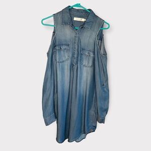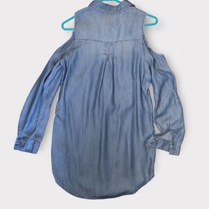 New Billy T Chambray Blue Denim Jean Shirt Dress Cold Shoulder Lightweight