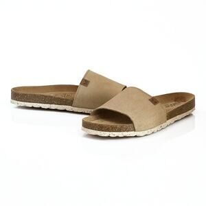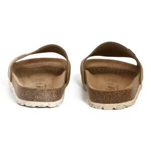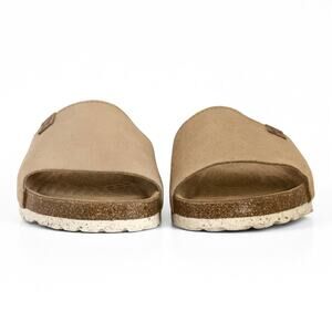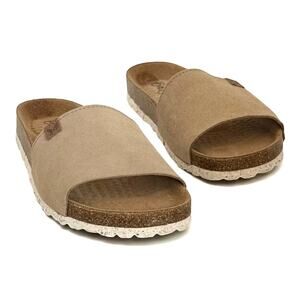 New Biostep Leather Light Taupe Cork Footbed Slide Suede Sandals - Size 9.5