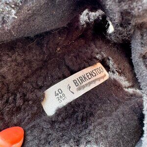 New without box. Birkenstock Arizona Big Buckle sandals in black gold with teddy shearling lining, size 9 / 40.