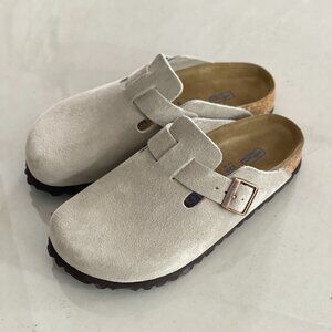 New Birkenstock Boston Ladies taupe suede clogs slipper