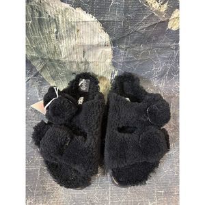 New Birkenstock Papillio Arizona Teddy Shearling Fur Platform Sandals Black EU37