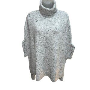 New Bishop + Young SOFT Speckled Gray Knit Poncho Sweater Turtleneck Small