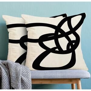 New: Black And White Pillow Covers (2 packs)-Geometric Abstract Modern Art Line Throw Pillow Covers Modern Minimalist Style Decorative Square Linen Cushion Case Boho Decoration