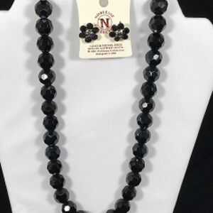 This lovely Black glass crystal beaded necklace is 17 inch long! It comes with a secure Lobster clasp.The black color is always relevant. You may wear it with any style any time! It may complement a T-shirt with jeans as well as a nice cocktail dress