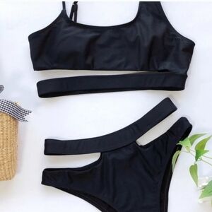 New Black Cut Out Bralette High Waist Bikini Set Swimsuit Size L