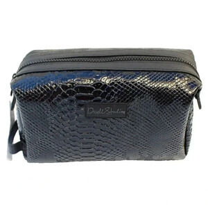 New Black Faux Snake Skin Dwell Studio Travel Valet Cosmetic Bag Zip Closure