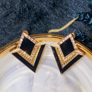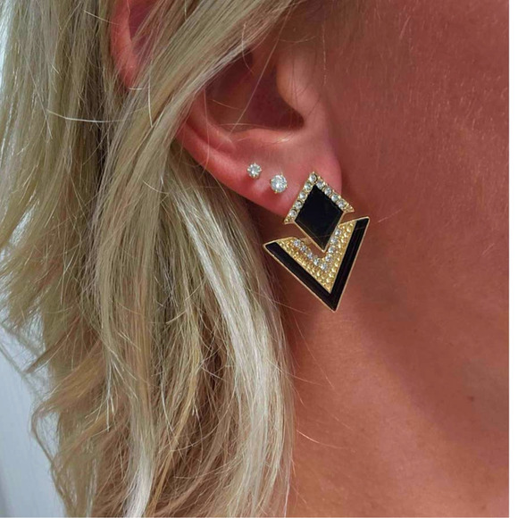 New Black Gold Dangle Rhinestone Triangle Diamond Geometric Earrings