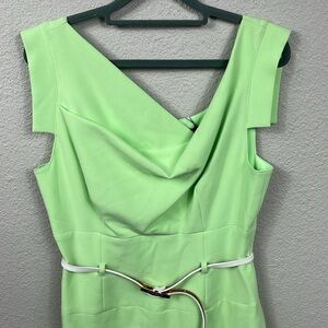 New Black Halo Jackie O Sheath Dress Sleeveless Belted Paradise Green Sz 8