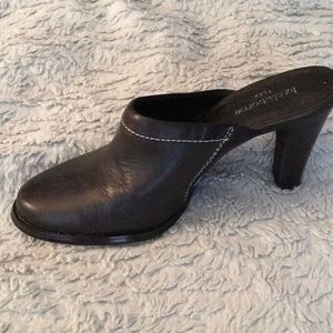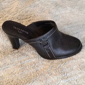 Lovely Black clog with white stitching and faux buckle detail on the side.