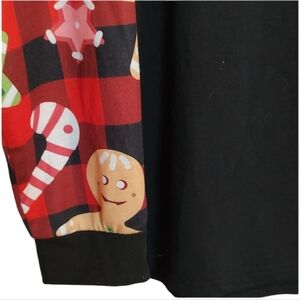 NWOT. New Black "Merry Christmas" Long Sleeve Top sz Large. Sleeves are red & black buffalo plaid with gingerbread man & candy canes. Please see pic for materials and further description.