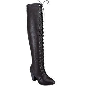 Spruce up your outfit with these lace up over the knee chunky heel combat boots.