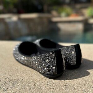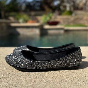New Black Pewter Rhinestone Crystal Ballet Flat Shoes Ballerina Slide Slip On