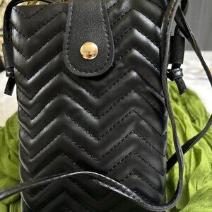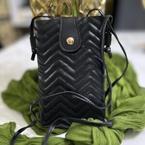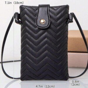 New Black Quilted Crossbody Mini Bag with Chevron Pattern