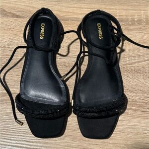Express New Black Rhinestone Embellished Ankle Tie straps Sandals strappy flaps