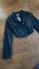 Black vegan faux leather structured crop corset style jacket / shacket. Has hook and eye let style closure at bodice.