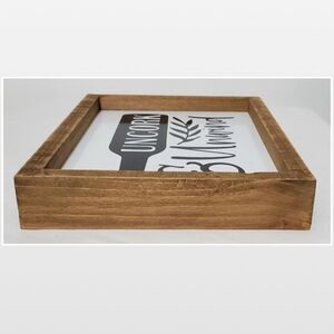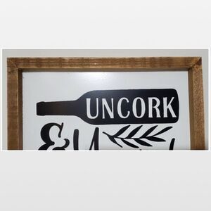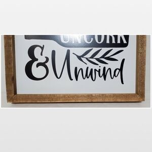 New room & retreat Collection black & white uncork & unwind tin spell out decorative sign. Features wood frame & leaf accent. Approx. 10”L, 1.5”W, & 7.5”T. Due to the natural characteristics of wood, each piece will vary slightly, including the grain pattern, knots, color, etc. No traditional tags. Ask any questions before purchasing. Enjoy buying from an Ambassador II. Same or Next Day Shipping 🎁 Make an Offer or Bundle to Save 😊💕 All sales final & sold as is