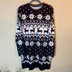 New Black & White Winter Deer Print Body Con Mini Long Sleeve Dress XXL 14 Plus