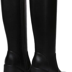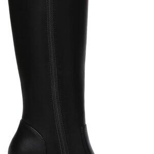Features: These stylish knee-high boots feature a trendy square toe and a chunky 3.15-inch platform heel, adding a modern edge to any look. The PU leather material offers great stretch and a comfy fit around the legs. The side zipper makes them easy to slip into, and the water-resistant design means they’re ready for the elements. They’re versatile enough to dress up for date nights or keep it casual for errands.