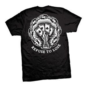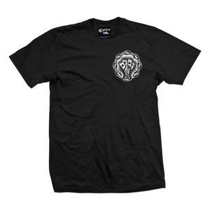 Raised screen printed designs on front and back • Crew neck • Short sleeves.