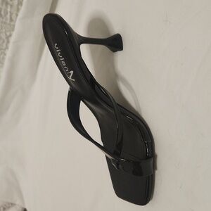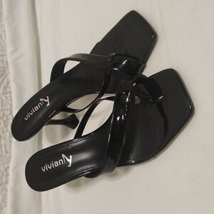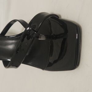 New! Black faux patent leather high heel sandals stiletto slip on party shoes