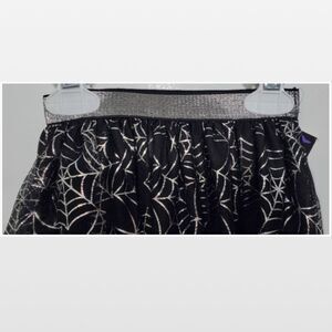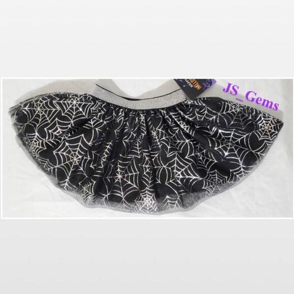 NWT Haunted House Symbol 24 months toddler pull on black skirt with metallic silver spider webs. Perfect for Halloween fun parties, cosplay, or costume! Features silver sparkle web print, metallic silver .75” thick elastic waistband, & multiple 3 layers of mesh. Approx. waist 8”, & 8.5”T. Ask any questions before purchasing. Same or Next Day Shipping 🎁 Hit the buy now button, Make an Offer, or Bundle to Save 😊💕 All sales final & sold as is.