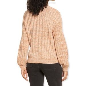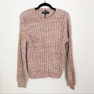 New Blank NYC Heather Ribbed Crew Neck Knit Sweater in Toffee