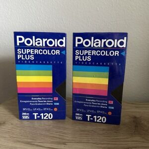 New Blank VHS Tapes Lot of 2 Polaroid Supercolor Plus T-120 6 Hour Sealed