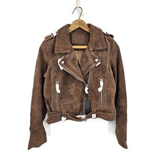 New BlankNYC Suede Moto Jacket Womens S Brown Belted Crop Blank NYC