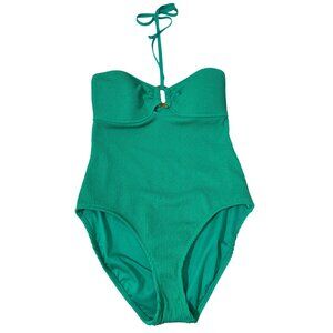 New Bleu Rod Beattie Halter Pucker Green Size 14 One Piece Swimsuit Bathing Suit