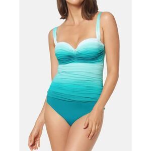 Bleu by Rod Beattie's one-piece swimsuit is breezy and beautiful with a shirred ombré design and a gorgeous sweetheart neckline. Underwire cups. Moderate bottom coverage. Pull-on styling; adjustable straps. Sweetheart neckline. Shirred ombré design. Lined.