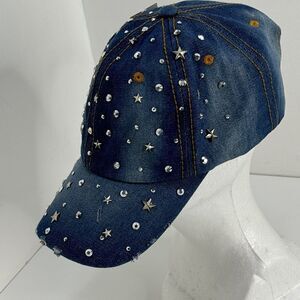 New Bling Hat Fun Western Rhinestone Baseball Cap, Bejeweled Distressed Stars