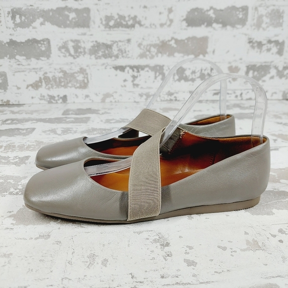 New Blondo Briellle Grey Leather Waterproof Square Toe Flats C646