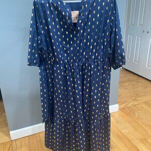 New Bloomchic Navy Blue and Gold Dress with Belt- Size 18-20