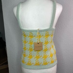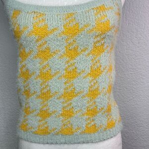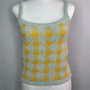 New! Blu Pepper Mint Green & Yellow Houndstooth Sweater Tank Women‘s Top Sz S