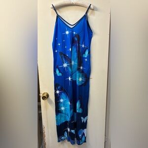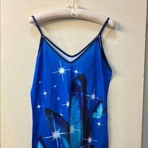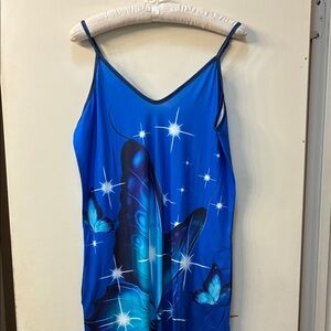 Vibrant blue dress with a stunning butterfly print. Perfect for a bold look.