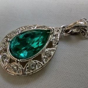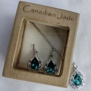 This is a silver tone ( not sterling silver) New Blue Green Teardrop Shaped Necklace & Earring Set NIB by Canadian Jade.