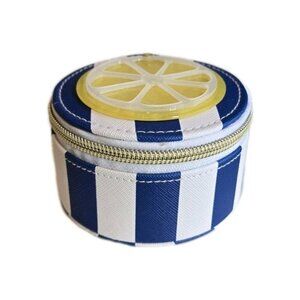 New Blue & White Stripped Miami Beach Lemon Slice Summer Travel Jewelry Box Case