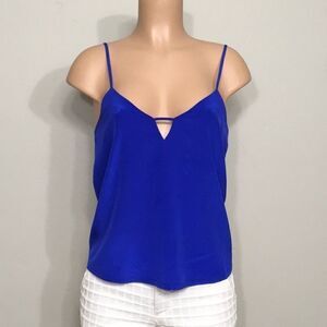 New. Blue silk v-neck spaghetti strap top. NWOT